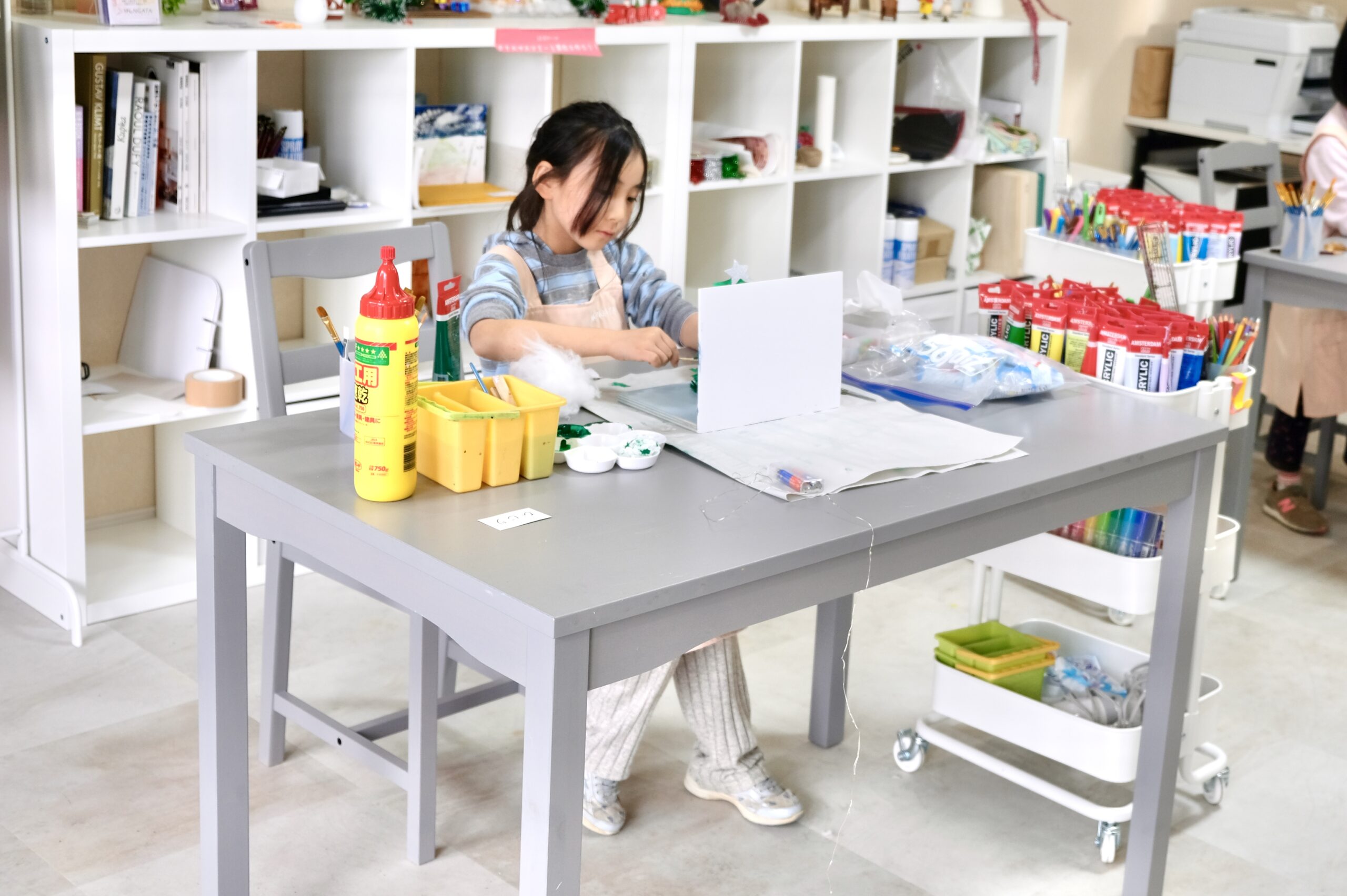 自由な発想を形にする体験を通じて、感性・創造力の基礎を育むクラスです。毎月テーマが替わり、多様な素材に触れながら作品を作ることで、豊かな美的感性の成長に繋がります。研究学園都市ならではの研究者論文を基に作ったレッスンや、世界のアートに触れられるレッスンなど、作るだけで終わらせず、学びや成長につながるものづくりの時間です。たっぷり90分、夢中で成長できる時間を提供いたします。