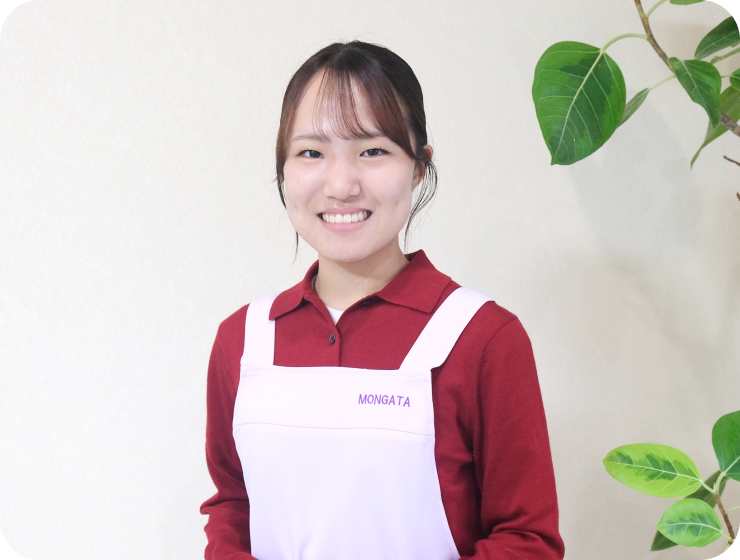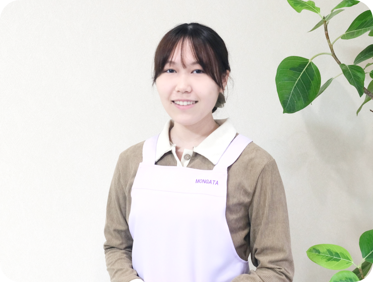 将来は美術教師として活躍することを目指しており、大学で勉強中です。MONGATAではその学びを生かしながら、子どもたち一人ひとりのペースや個性に寄り添い、安心してのびのびと表現できる時間を大切にしていきたいと思っています。