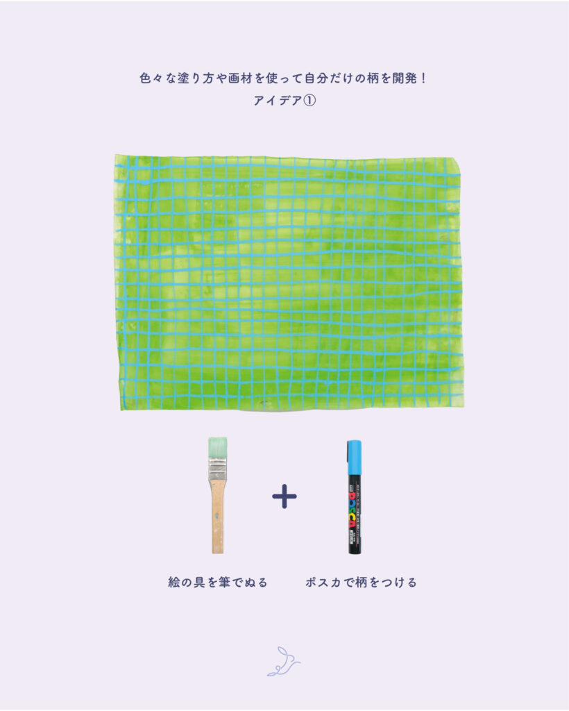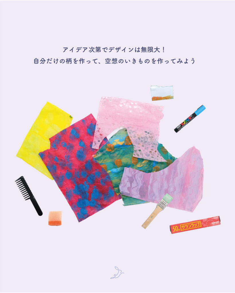 偶然できた色や形から、想像をふくらませて作ってもOK。