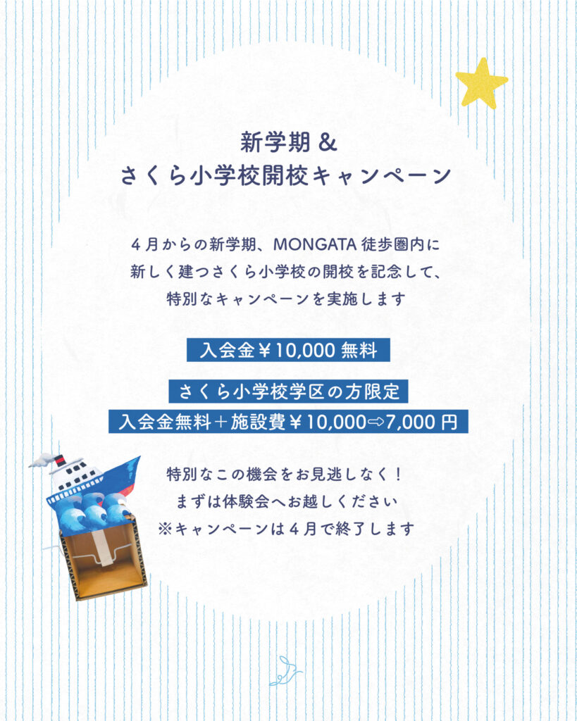 4月からの新学期、またMONGATAの徒歩圏内には「さくら小学校」が新しく開校㊗️